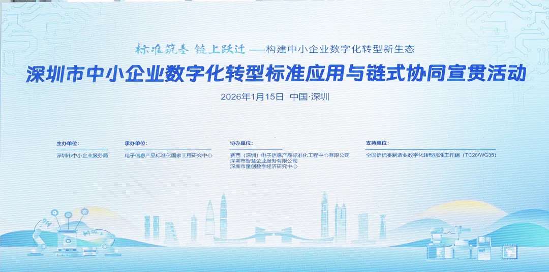 1月15日,由深圳市中小企业服务局主办,以 “标准筑基,链上跃迁——构建中小企业数字化转型新生态” 为主题的深圳市中小企业数字化转型标准应用与链式协同宣贯活动在深圳举办,爱世达总经理谢世良受邀出席。